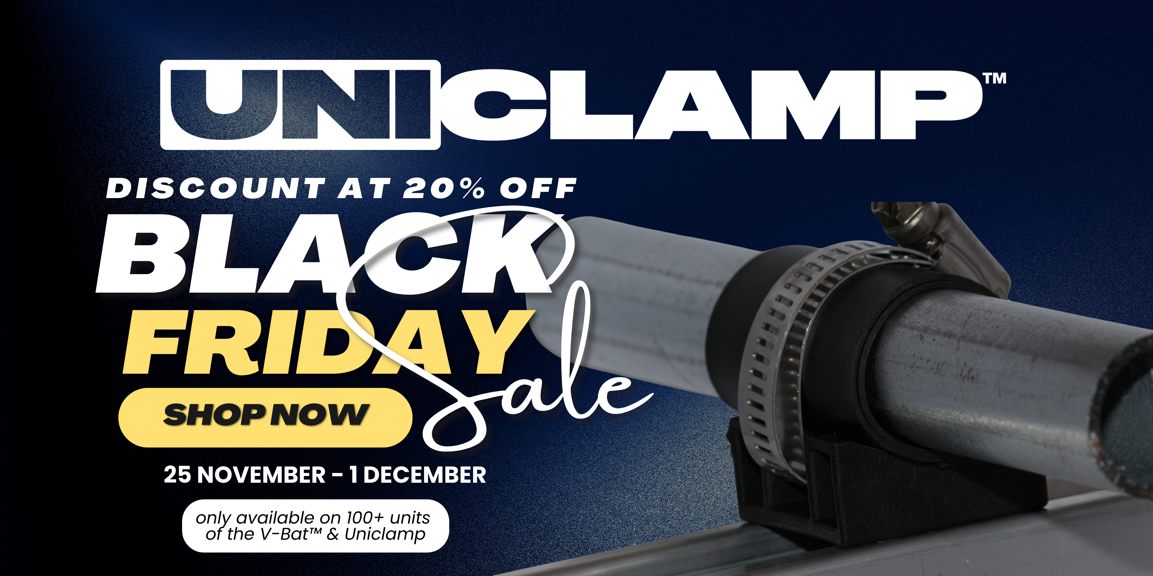 Designed for flat surface applications, and universal size (3/8" up to 5") hanger applications, the Uniclamp V-Bat sports a rugged 30% glass-reinforced construction with a tensile strength of 5 kilo-newton.